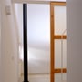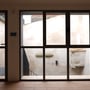 The floor plan of an apartment on the ninth floor of an 18-story residential tower on Gran Via in Barcelona was completely redesigned following a full gut renovation. Despite the individualized room layout, a seamless spatial continuity was achieved. Through the use of ‘room furniture elements,’ semi-open living zones were created, offering the occupant an engaging interplay of light and shadow. The various room divisions, such as the studio and living areas, are visually separated by these elements while remaining connected through generous glazed panels. The exposed ceiling in the living area and studio becomes a unifying spatial feature. The kitchen and living area form the apartment’s primary unit and are connected via a large, open wooden window in the form of a pass-through, serving as the central focal point of the main living space. Exceptional attention to detail is evident in all custom-designed elements, including large sliding doors, furniture, and bathroom fittings, which together form a crucial component of this residential project.