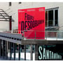 A temporary promotional installation for the 2015 exhibition year was designed for the semi-public terrace of the Santa Mónica Museum on La Rambla. The concept was to create a lightweight structure reminiscent of an open book. The terrace, designed and built by renowned urban architects Viaplana and Piñon, enjoys protected status, which meant that the installation could not have a single fixed connection to the terrace surface. A system of tensioned steel cables stabilizes the structure while ensuring the safety of passersby.