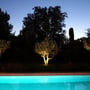 A carefully considered planting and lighting scheme ensures a seamless connection to the garden landscape, particularly in the evening hours, creating a tranquil space for rest and contemplation.