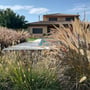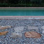 The garden design is conceived as an integral part of the house’s restoration, set within a context of rich historical character. The central courtyard, adorned with two mulberry trees, organizes the outdoor spaces while maintaining a direct connection with the surrounding medieval walls. These partially landscaped walls define the composition and frame the areas of the pool, terrace, and entrances. Plantings consist of perennial species and carefully selected Mediterranean vegetation suited to the site’s microclimate. Aromatic herbs, grasses, and flowering perennials introduce texture and movement to the linear beds, creating a fresh and inviting summer atmosphere.