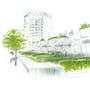 After a year of severe drought, the water basins of La Caixa have remained empty and are planned to be transformed into green gardens. The proposed gardens flow like a waving sea of lush greenery, and the horizontal movement of this vegetation creates a dialogue with the organic verticality of the building. In this way, the observer’s view from Avinguda Diagonal is intended to be enhanced and amplified.