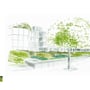 Through the simple act of looking up, one can rediscover the value of a place… to explore the verticality of the space… to be surprised, pause, and return one’s gaze to the wall. Steel cables cross the space to anchor climbing supports to the ground… they are intended to serve as the foundation for six green columns at varying heights…